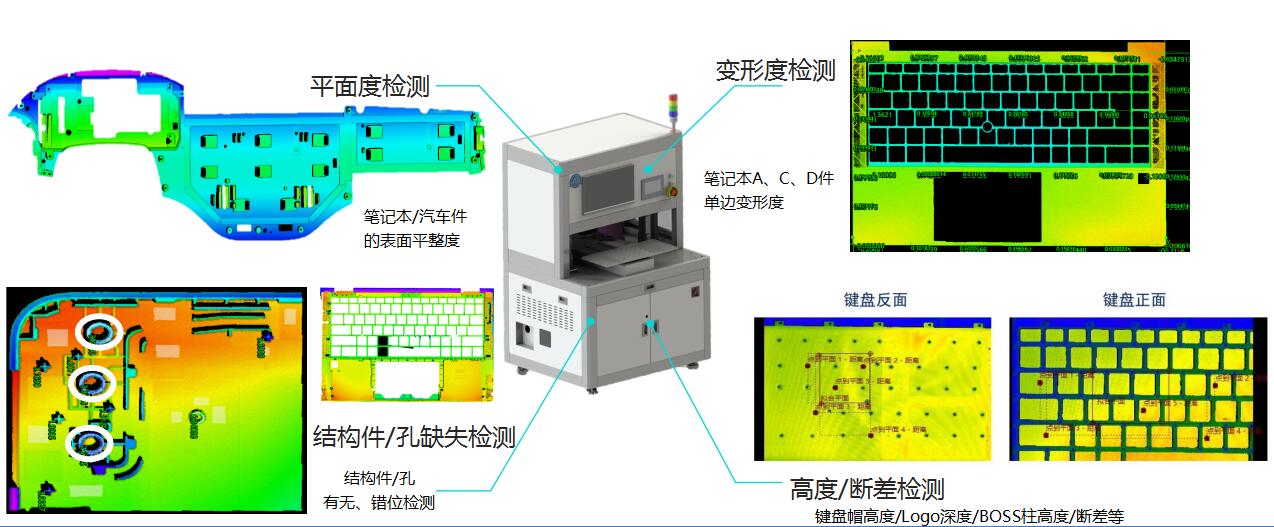 • 测量方式效率高:整个平面线扫描一次成像,无需拼接,数据采集后,系统自动计算给出平面度、平整度、翘曲度误差测量判定