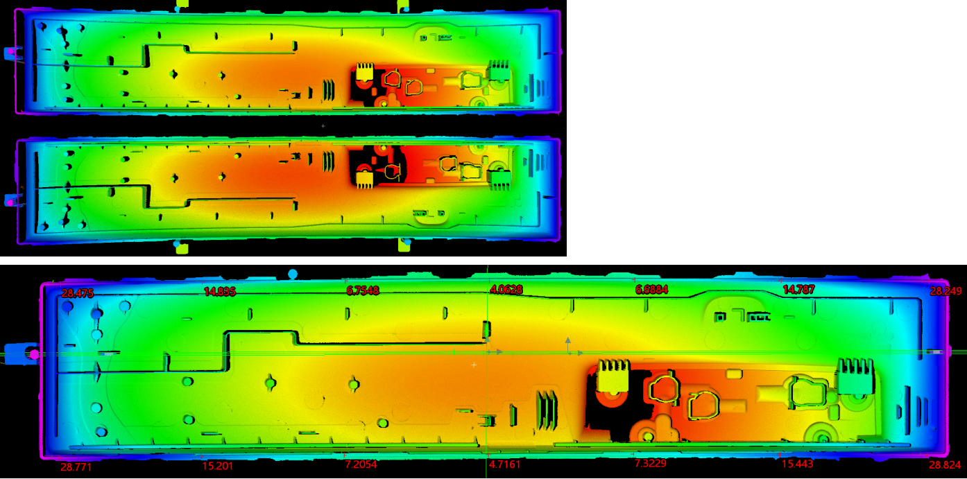 - 整个平面线扫描一次成像,1min内完成整个产品所有区域的平面度/轮廓度检测