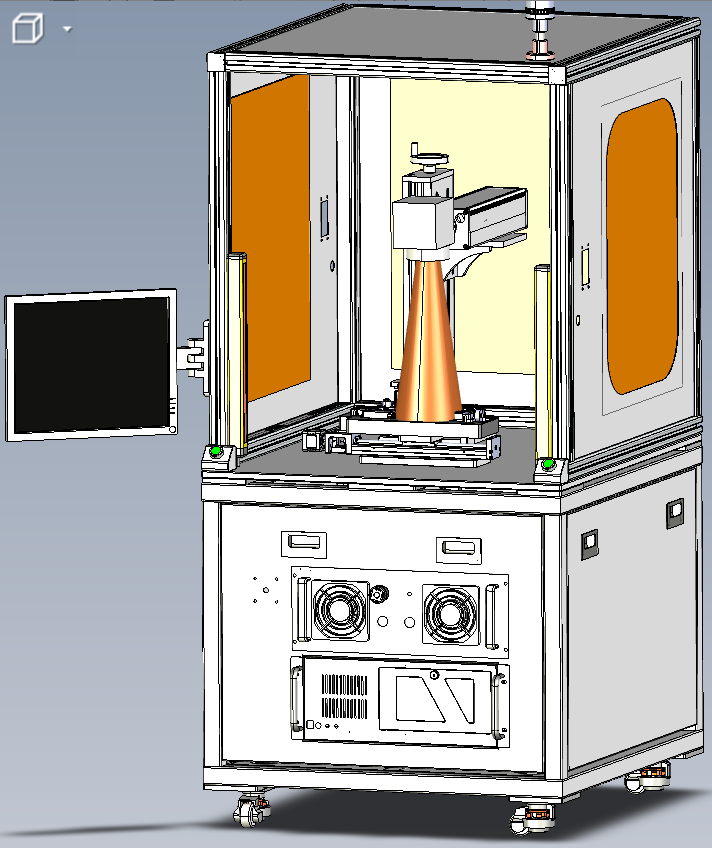 一体式镭射打标机,可通过定制化总线方式获取产品信息,自动解析打标内容,兼容多种规则的打标方式